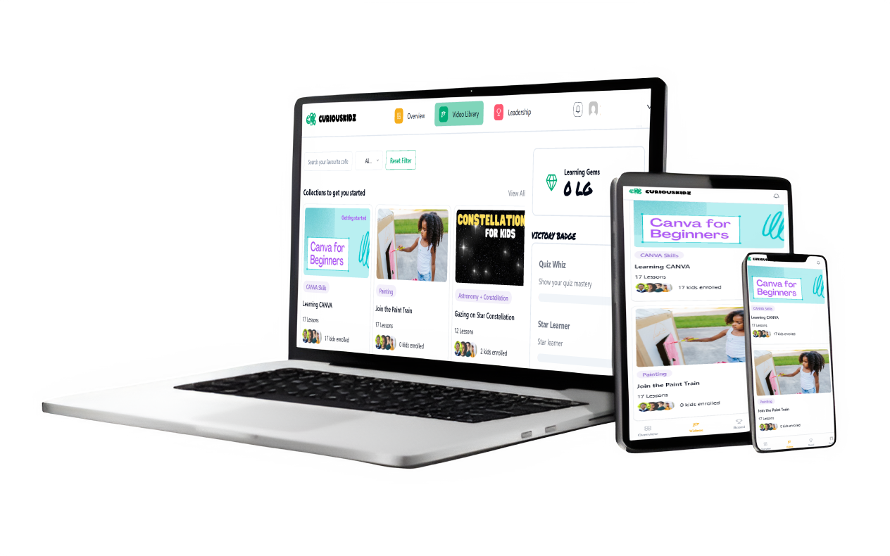 Curious Kidz turns mindless scrolling into meaningful moments. With gamified learning paths, badges, and video-based challenges, your kids learn without even realizing it — while you gain peace of mind knowing they’re in a safe, ad-free space built for growth.